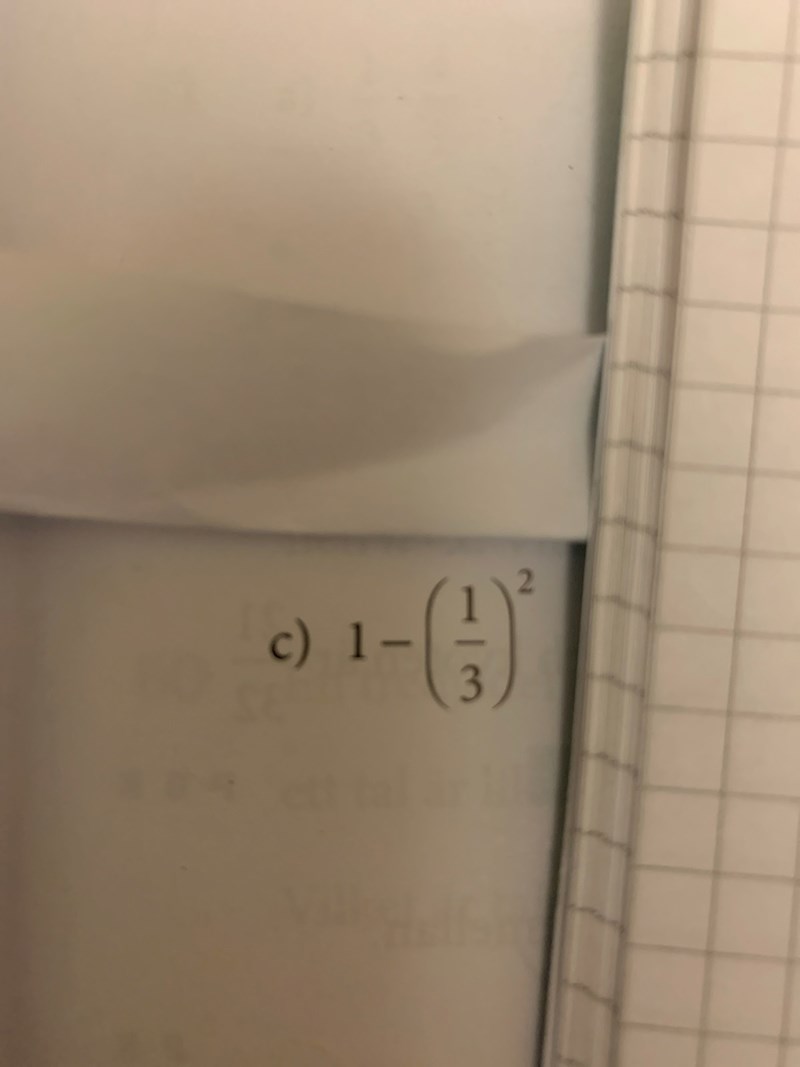 Hej, behöver hjälp med denna uppgift, har löst den tidigare men har just nu hjärnsläpp och kommer inte exakt ihåg hur man gjorde i slutet :/ Jag kommer fram till 1- En niondel, sedan har jag glömt vad man gör. Är tacksam för svar