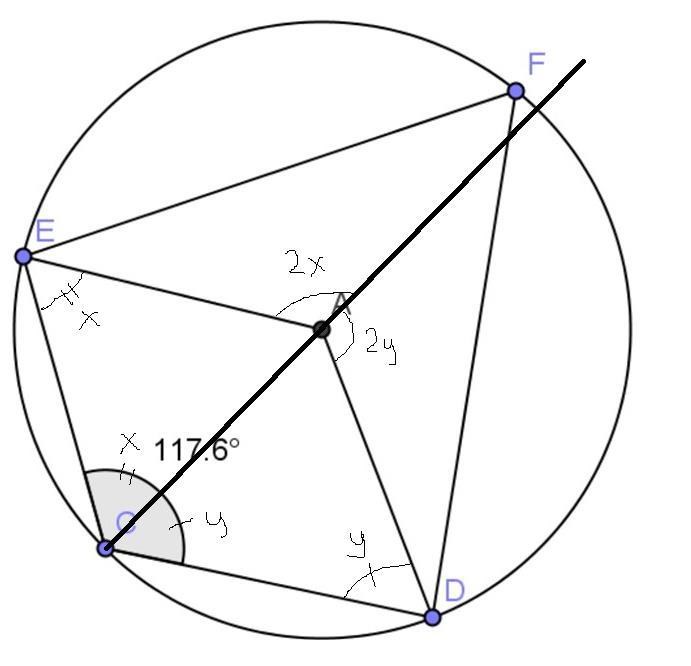 Nu vet vi ju vad x + y är, kan du då räkna ut vinkeln EAD som ligger ut mot punkten F?