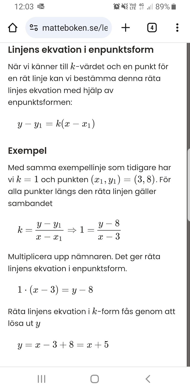 Jahaa det har du ju rätt i! Är det värt och lägga energi på enpunkts formeln eller funkar den metoden jag skrev lika bra? Enda problemet är väll om man bara har m punkten och inget annat?