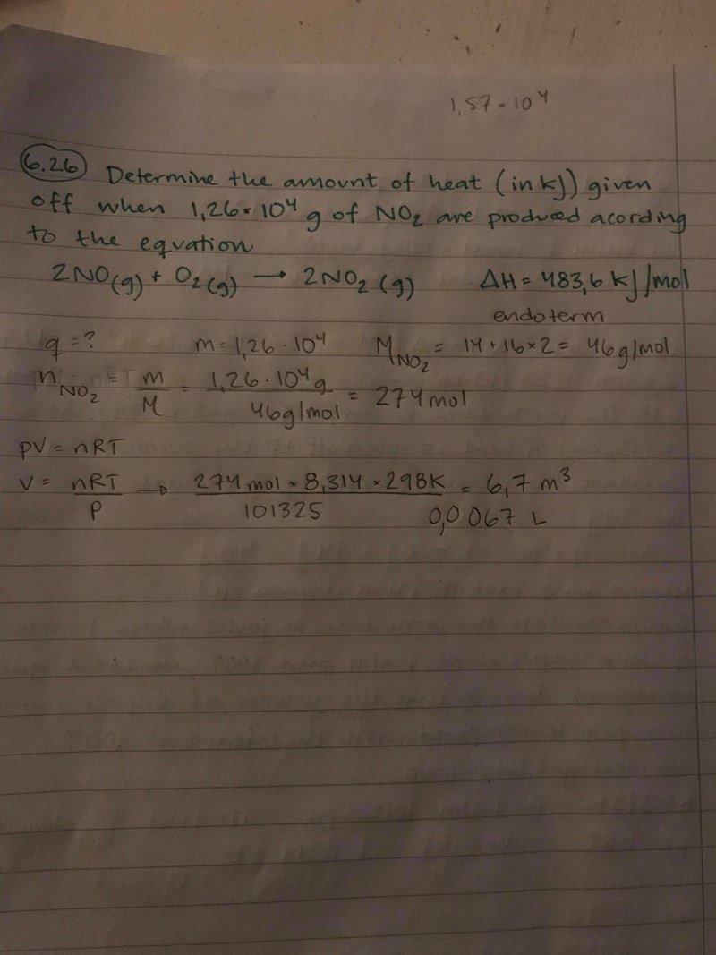 Jag känner mig tyvärr helt lost. Har försökt räkna som boken men i det exemplet är det en exoterm reaktion istället så jag vet inte om man ska tänka tvärtom vid endoterm. Men nä jag vet inte hur mycket energi som bildas om man har 274 mol NO2 :(