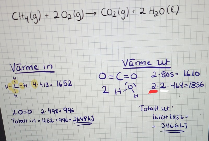 Jag vet att 1 st H2O= 464 KJ. Nu står det i uppgiften 2H2O vilket ger= 2× 464.