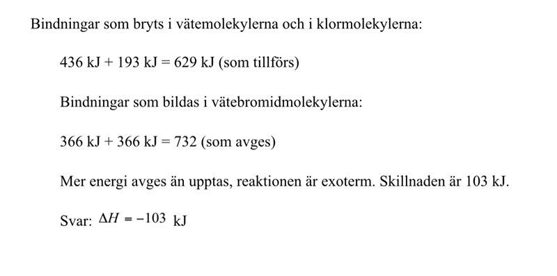 Bestäm med hjälp av bindningsenergier för reaktionen