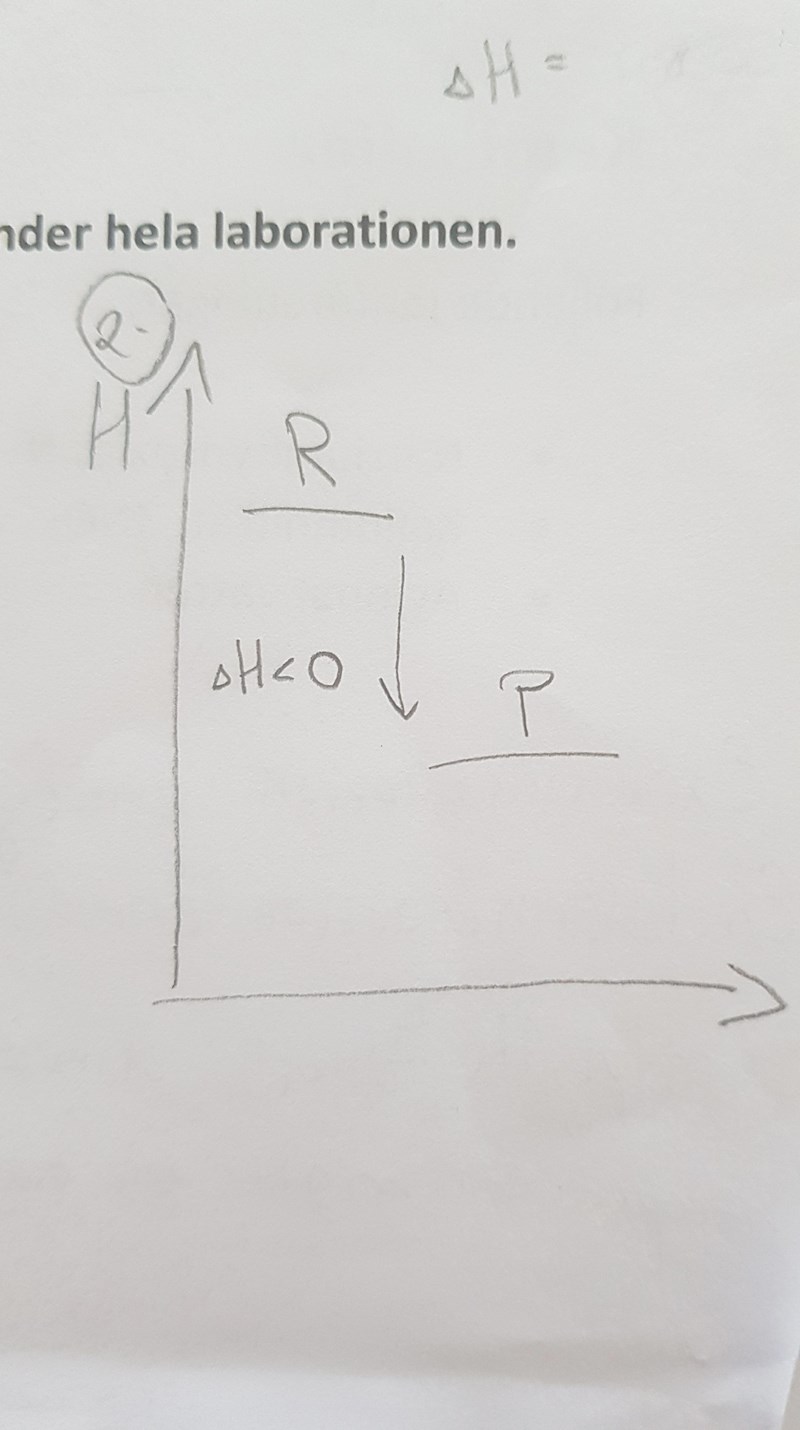 Du löser ammoniumnitrat i vatten oc temperaturen sjunker på lösningen. Rita denna reaktion i ett entalpidiagram.
