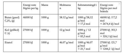 I min bok så står det att stenkol är 27 000 kJ.