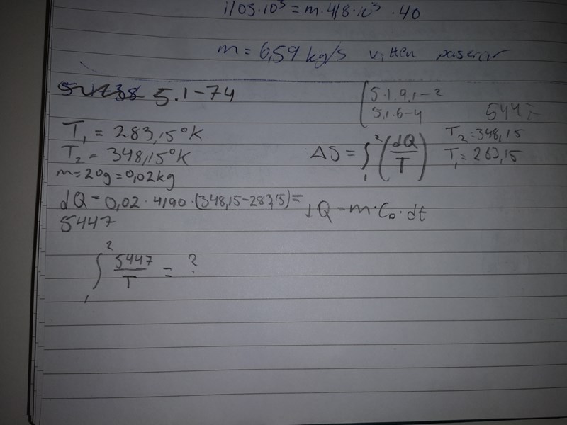 Jag får ut dQ till 5447 om jag gör om 20g ->0.02Kg och 4,19kJ till 4190 J/(kg*K). Därefter vet jag inte om jag gjort rätt