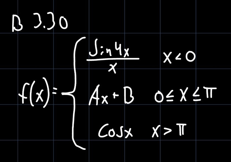 Mellan 0 och pi är den alltid kontinuerlig, där är den Ax+B.