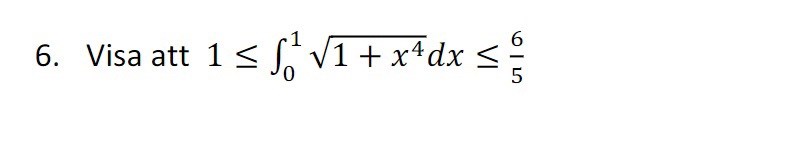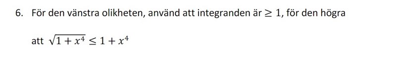 Problemet är att integralen du har i mitten av olikheten saknar en elementär primitiv funktion. Du får alltså resonera dig fram istället för att försöka beräkna just den integralen.