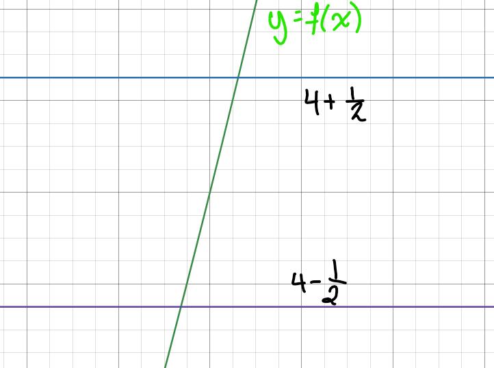 När jag testar numeriskt verkar det stämma. Låt säga att vi undersöker gränsvärdet i punkten för funktionen och att vi väljer . Då måste vi hitta ett sådant att . Om vi väljer t.ex. funkar det. Och vi kan ju alltid välja ett mindre och mindre , och fortfarande ha att det medför . Så om man hittar ett för ett givet , kan man alltid göra sitt mindre.