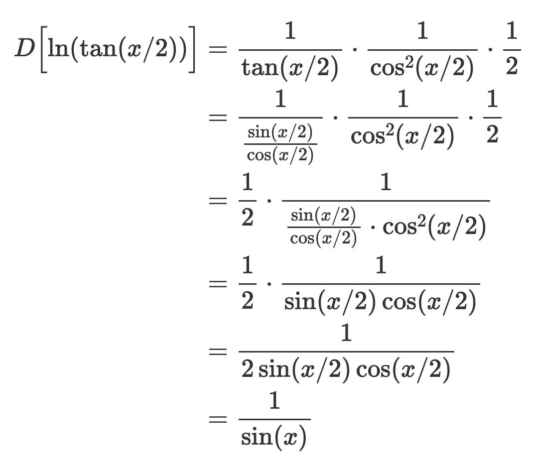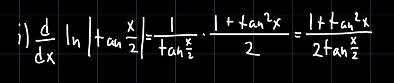 ska deriveras, yttre derivatan är rätt men gör fel när jag deriverar tan(x/2). Svaret ska bli 1/sinx