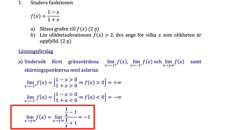 Så är det ju i princip som att vi har x/x=1 eftersom -1 och +1 blir mer och mer obetydliga när x blir väldigt stort.