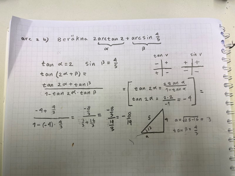 Envariabelsanalys. Beräkna 2arctan (2) + arcsin (4/5)