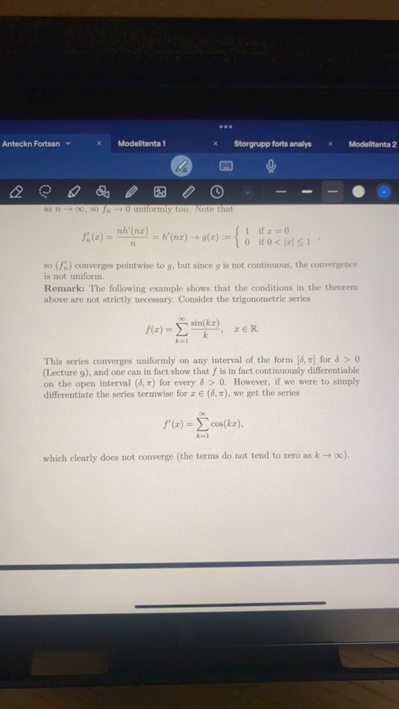 -fn' konvergerar likformigt till g (det är detta steg han visar på sista tavlan där han också skrivit ner satsen märkte jag nu)