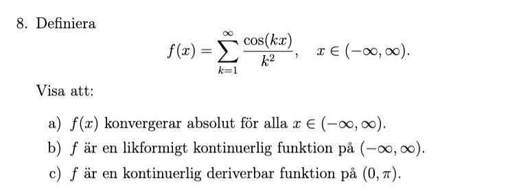 1. Om en serie av kontinuerliga funktioner är likformigt konvergent så är gränsen kontinuerlig