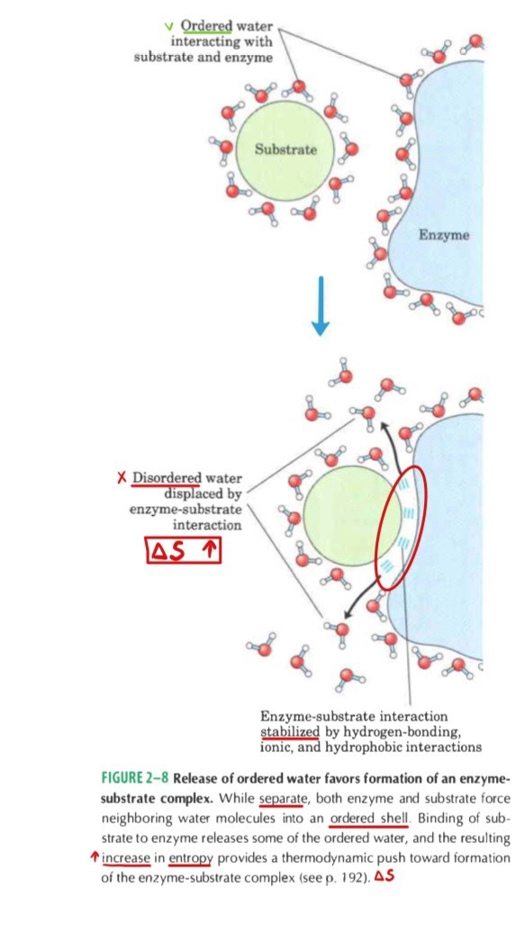 En ökning av systemets (substrat/protein/vatten) entropi, är i sig en drivkraft enligt termodynamikens andra lag, där grovt förenklat "system utvecklas mot ett tillstånd med maximal entropi".