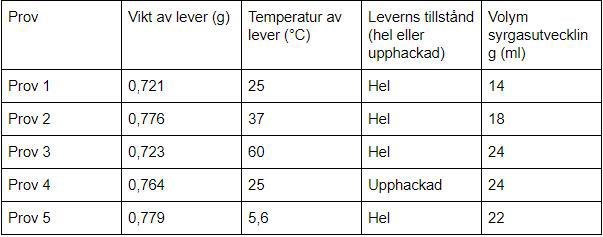 Det jag inte förstår är hur mindre syrgas producerades i prov 2 (kroppstemperatur) än i prov 5 (låg temp)? I prov 5 så producerades syrgasen konstant och det var inte kraftigt i början som prov 3 och 4, men jag förstår inte varför så stor mängd syre fortfarande producerades vid så låg temperatur?