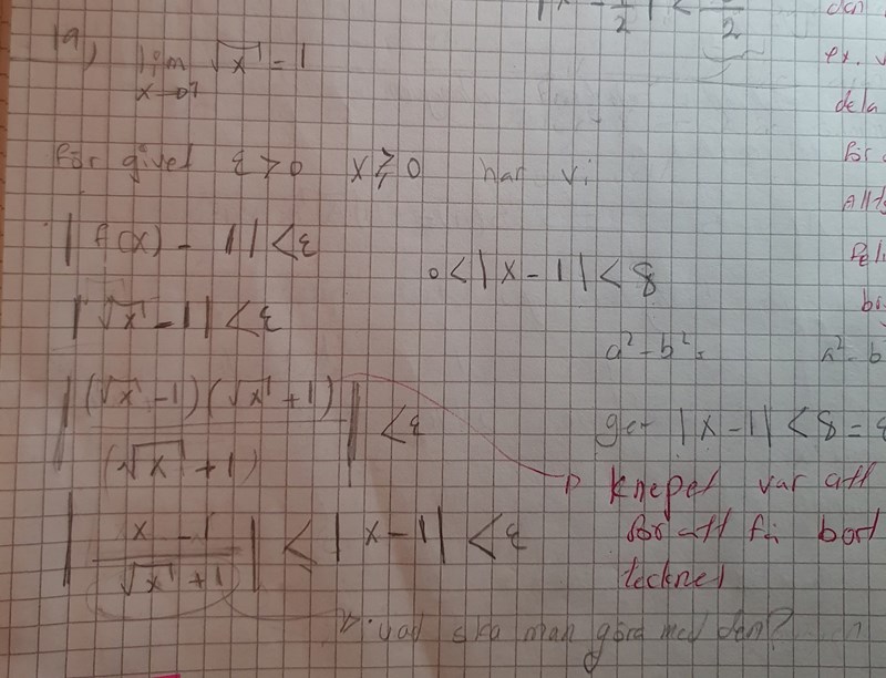 Jag vad ska man göra här i sista steget? Facit är otydligt. De skriver bara |x-1|<epsilon