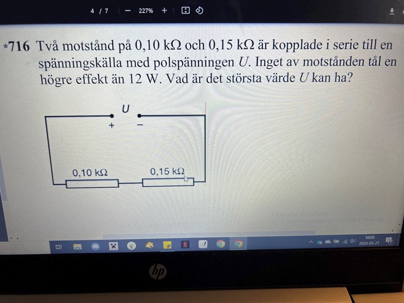 Jag behöver hjälp med två uppgifter. I 716 fick jag svaret 77, men i facit står det 71. Jag använde formeln P=U^2/R och fick fram att de klarade ungefär 42,4V och 34,6V vardera och att de därav borde klara 77V tillsammans.