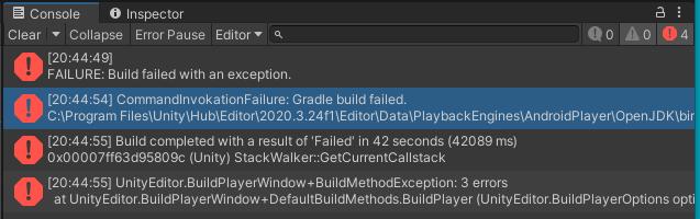 Jag försöker att skapa en tränings app på unity och tänkte lägga ut den på Google play store för testning av allt men medans jag försöker att så kallade (builda) den så kommer det upp fyra error