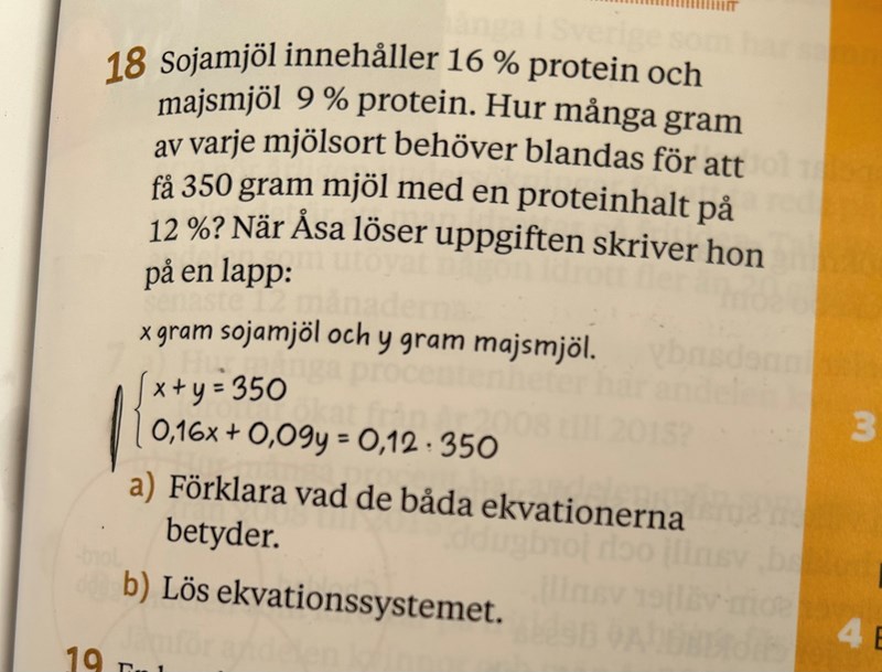 0.16x + 0.09y = 0.12*350 blir 0.16*(350-y) + 0.09y = 0.12*350.