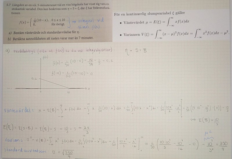 Det jag är lite osäker på är när jag ska ta fram väntevärdet och standardavvikelsen för "eta"=5 + xi.