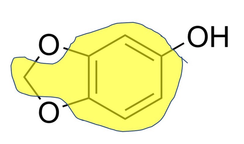 Nej en om du jämför strukturen av en bensenring med sesamols struktur, kan du nog hitta var "bensendelen" är, d.v.s. bensenenheten.