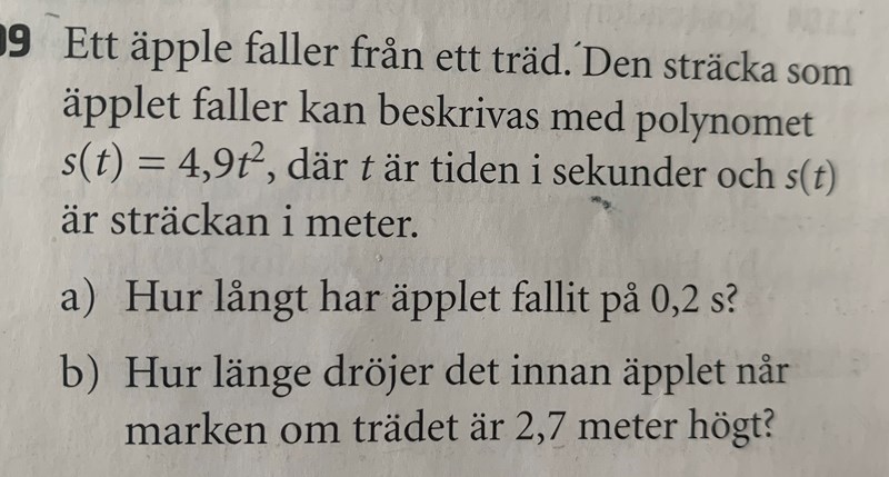jag har löst a) genom att ta x*(0,2)=4,9*0,2^2 och får 0,98 det ska bli 0,20 vad gör jag för fel?