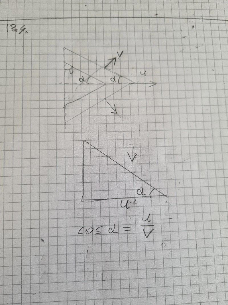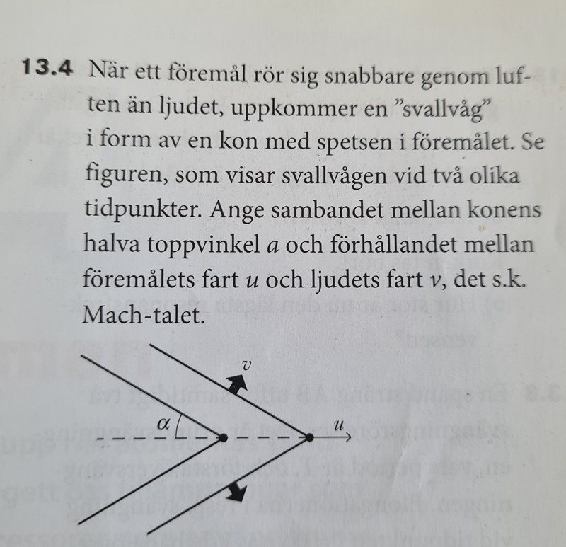 Ett föremål rör sig snabbare än ljudet. Vad är respektive hastighets samband med vinkeln alpha?