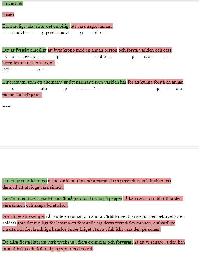 Hej! Jag ska göra en analys på en text vi i klassen skrev ~1 månad sedan och behöver lite hjälp. Jag valde 2 stycken, ca 150 ord.