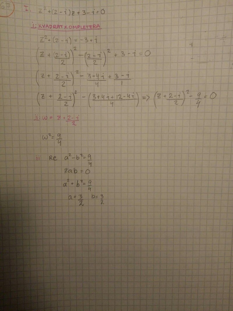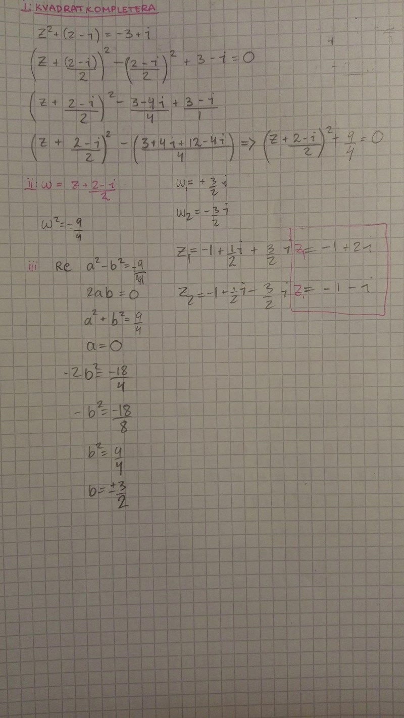 z2+(2-i)z+3-i=0 (Döper den till I)