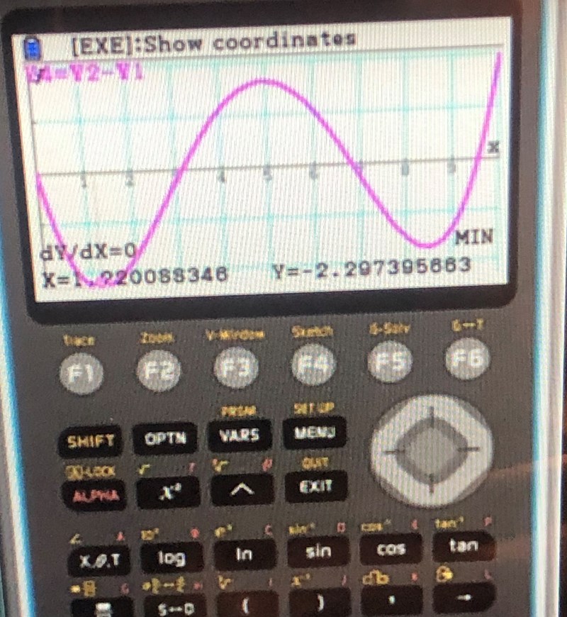 Så i grafen på min räknare slår jag in funktionerna så att de är minus varandra och får det som syns på den andra bilden.