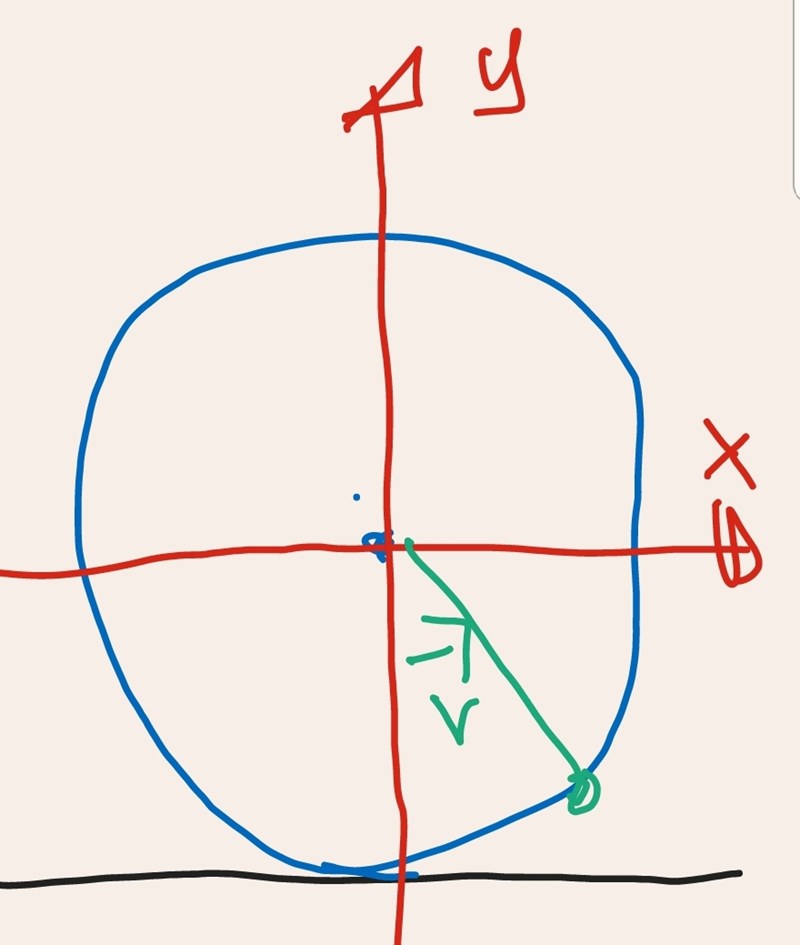 • När v = 90° (dvs när hjulet snurrat ett kvarts varv) så är y = 0