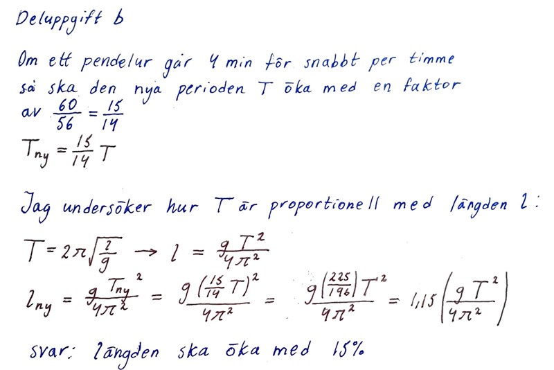 Ett pendelur går 4 minuter för snabbt varje timme. Med hur många procent ska pendelns längd förändras?