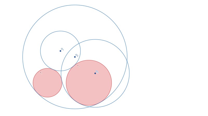 Om de två cirklarna har radier R1 respektive R2 så kommer en tredje cirkel med radie R att tangera k1 när avståndet mellan mittpunkterna är (R1 + R). k2 tangeras när avståndet mellan mittpunkterna är (R2 + R).