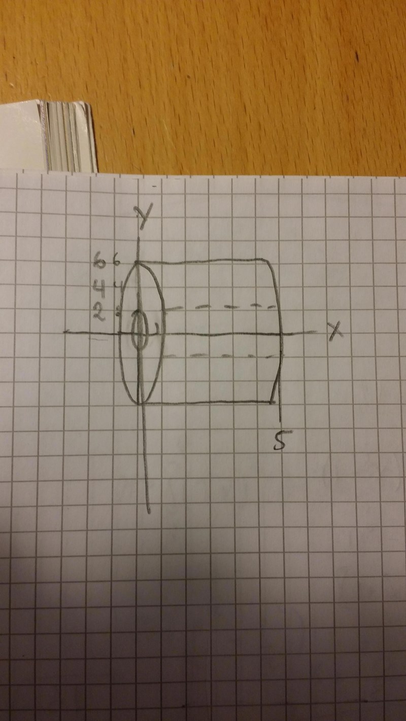 Men jag fattar inte graderingen på y-axeln, området som skapar rotationskroppen börjar väl vid y = 1?