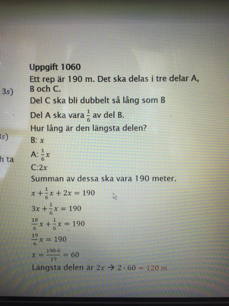Kan någon förklara så enkelt som det går vad som hände efter 19/6x=190? Snälla prata inte mattespråk med mig tar längre tid för mig att förstå har svårt för matte förklara gärna så enkelt som det går att förstå, tack!!