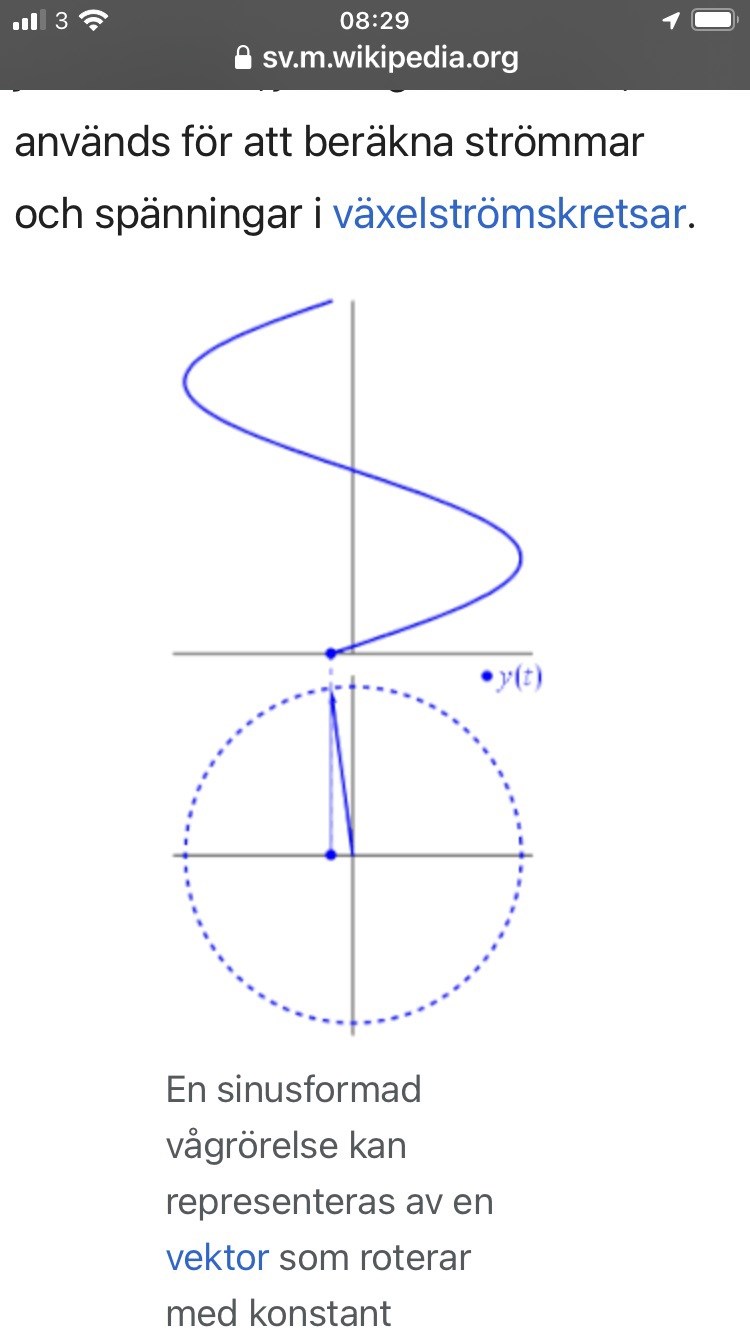 Om vi tänker oss att det är spänningen som visas i animeringen så hade visaren för strömmen snurrat runt 90 grader efter (för en induktans).
