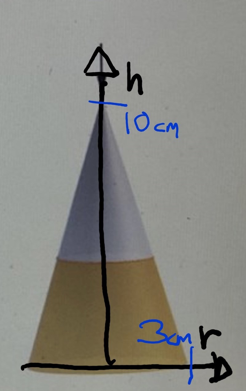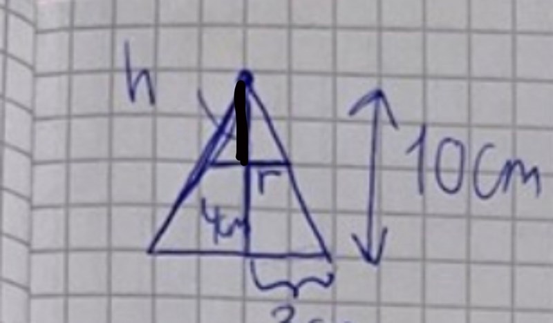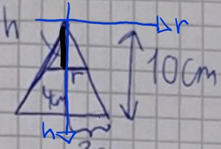 - Är du med på att konens radie är 0 cm då höjden är 10 cm?