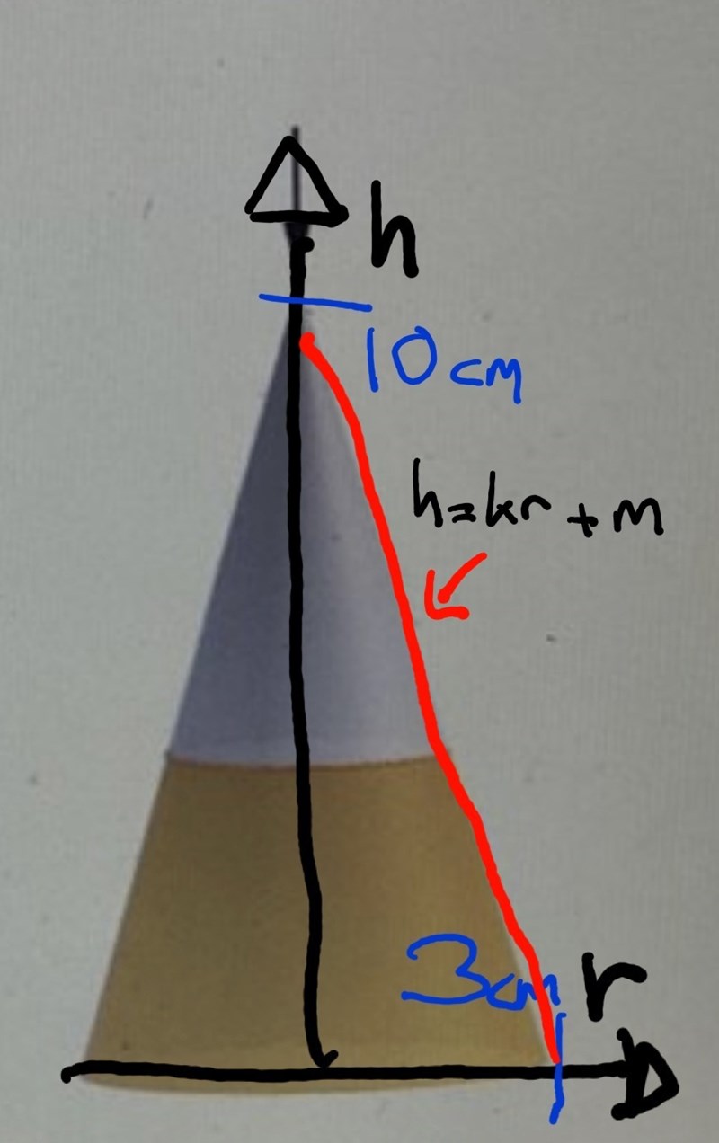 - Är du med på att konens radie beror på höjden enligt h = 10 - 10r/3 (där 0 r 3)?