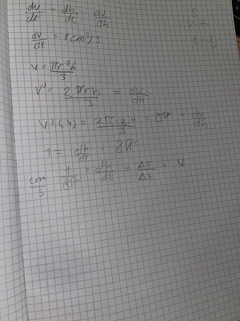 (Enheten för dV/dh är cm3/cm, dvs cm2, inte cm/s.)