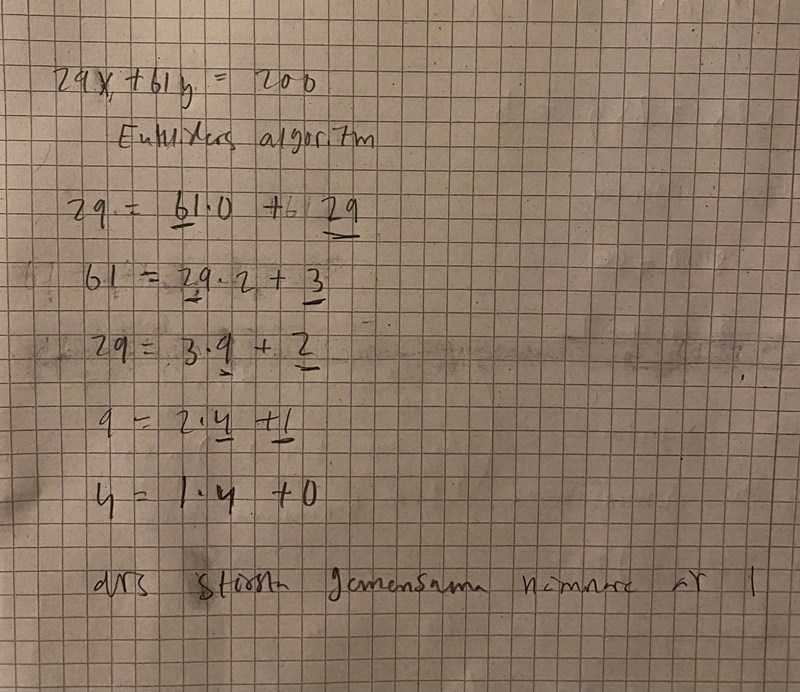 Fattar inte vad du menar med ”den ger inte så mycket” jag undrar bara om jag har använt mig av euklides formel på rätt sätt. Jag har börjat med 29 = 61x0 + 29 istället för 61 = 29 x 2 + 3