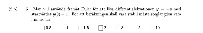 - Vad ger framåt-Euler för lösning (där är steglängden)?