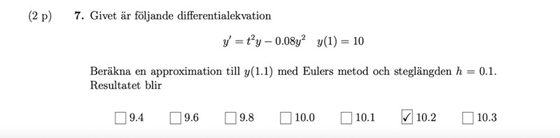 Programmering / Matlab 0 svar 99 visningar fiskbullen behöver inte mer hjälp Avmarkera fiskbullen 32 Postad: 2 jun 2022 10:21 Eulers Hur får vi fram t? Användare skriver Svara Du behöver Logga in eller Bli medlem först! Avbryt