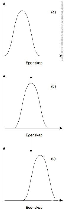 Vet du vad denna typ av evolution kallas? Jag misstänker att detta bör ingå i svaret. Om du vill utveckla svaret kan du även nämna vilket negativt selektionstryck som eventuellt finns. Att avvikare gynnas, räcker som motivation till förändringen. Men du kan även tänka dig att individer med den ursprungliga näbben drabbas av ett negativt selektionstryck, då de inte har samma chans att få lika mycket föda som avvikarna. Selektionstrycket kan vara någon eller flera av, mer föda (+avvikare), mindre föda (-ursprung) eller en kombination av båda.