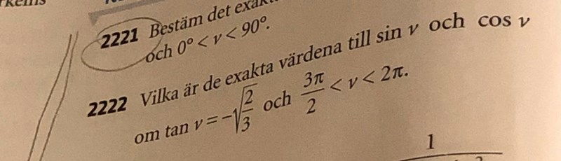 Exakta värden för sin v och cos v i ett konstigt intervall