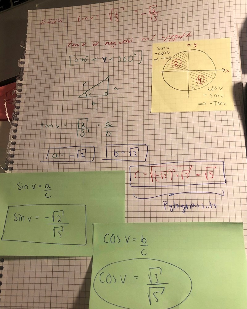 Då är det cosv som är postiv och sinv negativ enligt min bild jag laddade upp nyss?