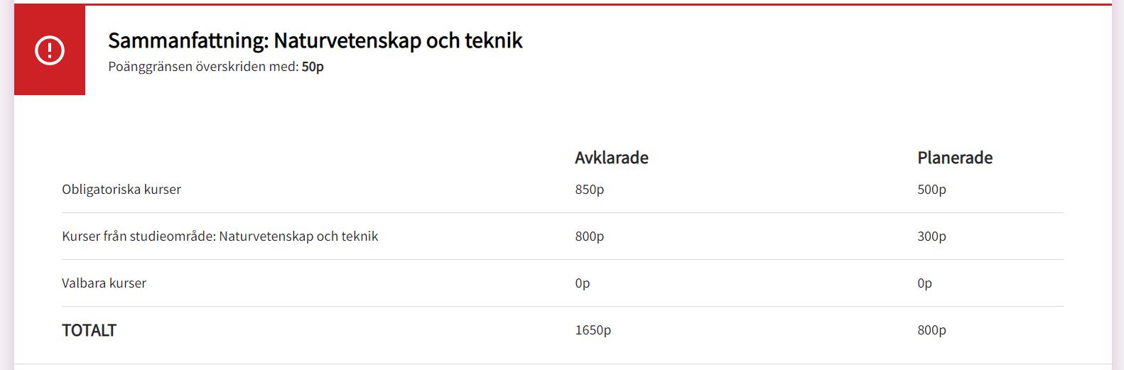 Ja. Du har fått 50 extra poäng eftersom du läst någon utökad kurs. Denna kurs kommer endast att räknas in i din merit ifall du behöver den kursen för just den utbildningen du söker.