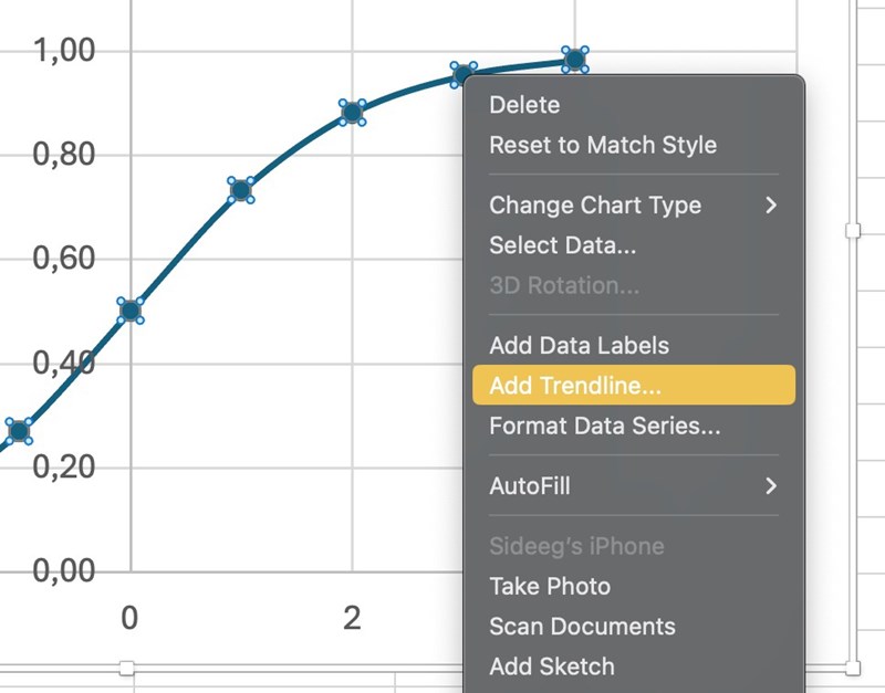 Njaaa den där funktionen kopplar bara ihop alla mina punkter. Jag vill ha en trendlinje som är s-kurvformad om du förstår vad jag menar.
