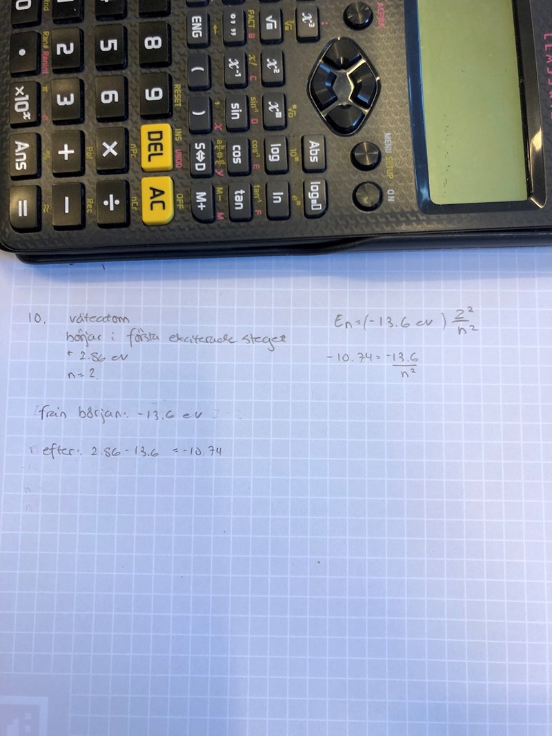 Du har skrivit n = 2, men sedan använt energivärdet -13,6 som om n var 1.
