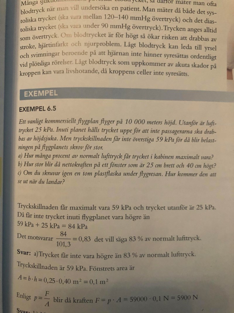 Jag har svårt att förstå Exempel 6.5. jag förstår inte varför man ska addera 59Kpa+25Kpa och därefter dela med det normala lufttrycket på 101.3Kpa.