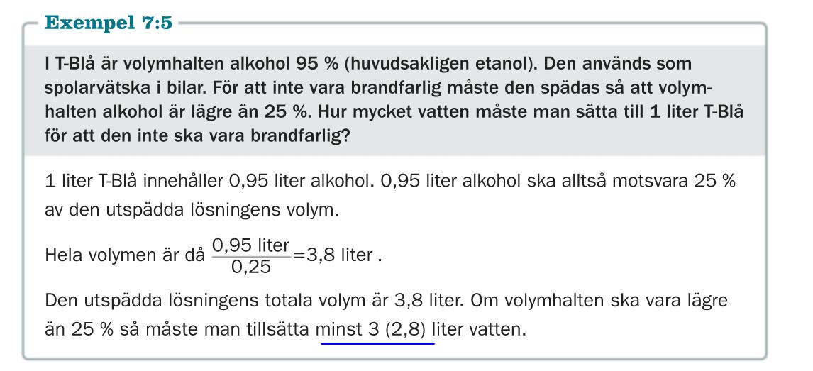 Frågan önskar svar på hur mycket du minst behöver tillsätta för att vätskan inte skall vara brandfarlig, du kan så klart tillsätta betydligt mer, men frågan är om den minsta volymen vatten som behöver tillsättas.